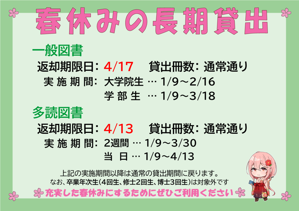 対象:本学学生・教職員および図書館発行の閲覧証をお持ちの方。