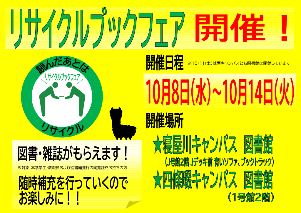 ※10月11日(土)は両キャンパスとも図書館は閉館しています。